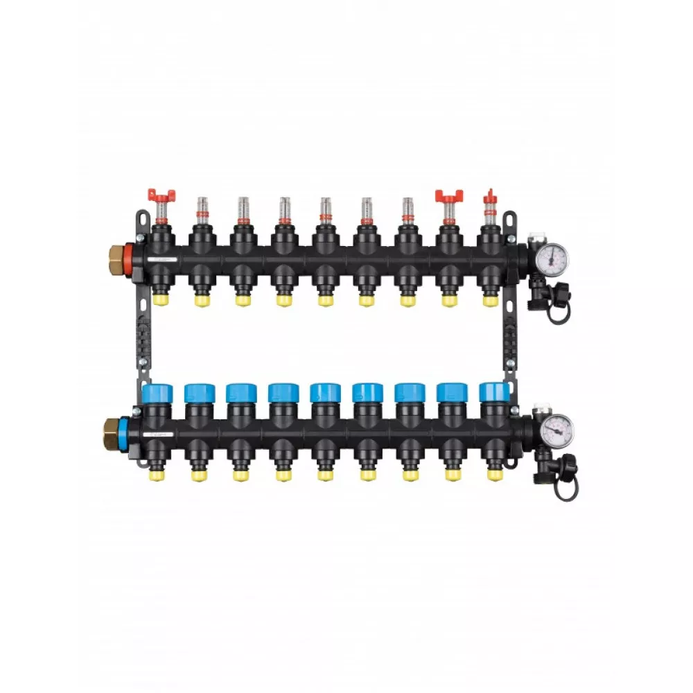 Доставка по России - Коллекторная группа с расходомерами Federica Bugatti 1"х3/4" 6 вых. пластиковый